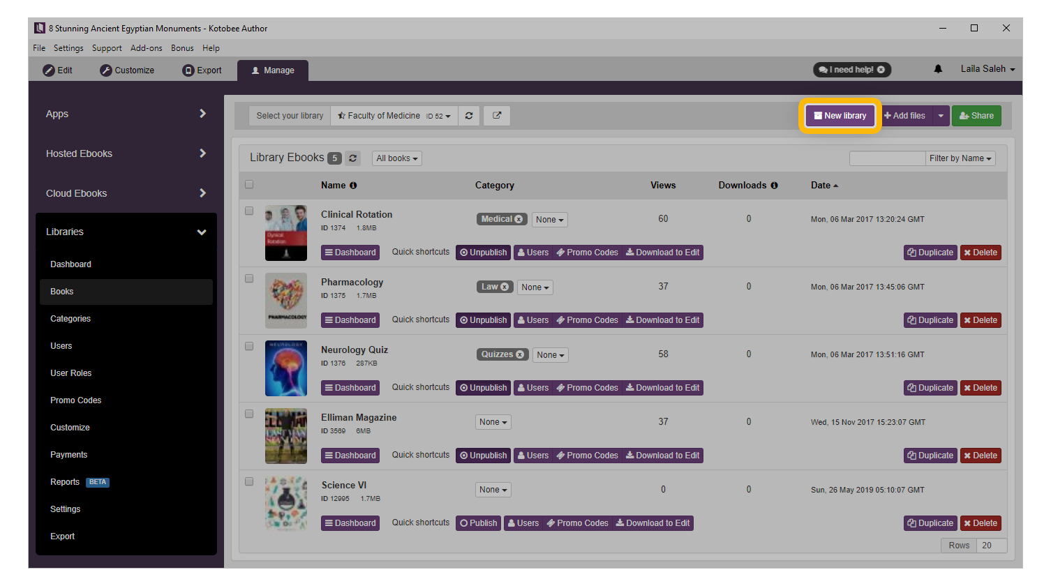 The libraries management screen will open. - Click on the New library button in the upper right corner.