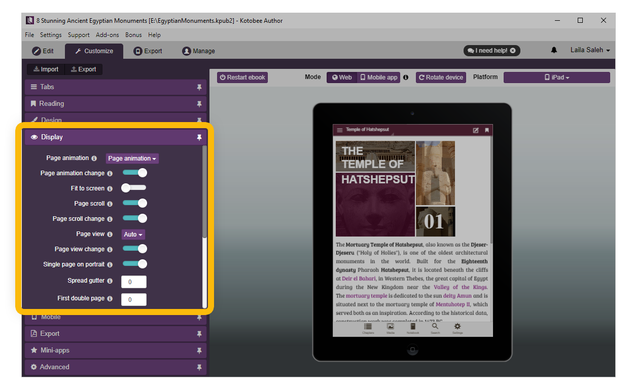 Learn about the customization screen, where you customize the reading environment of your new web, desktop, mobile app or hosted ebook, and emulate the app on different platforms and devices.