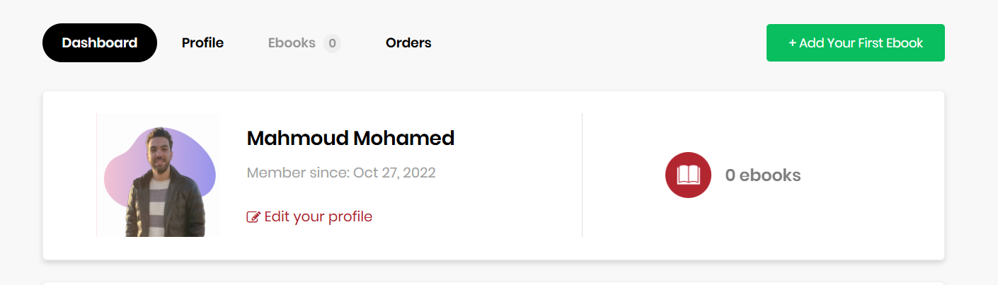 - Add new ebooks by clicking on the ‘Add Your First Ebook’ button. Note that if you’ve already added your first ebook, the button will read “Add new ebook” instead.