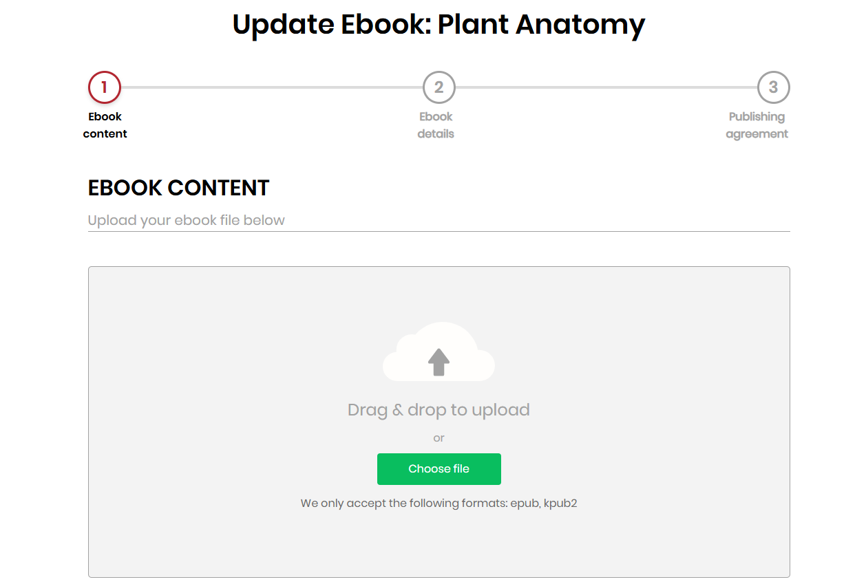 2. You’ll be then directed to the ‘Update Ebook’ page where you’ll be able to upload the updated file for your ebook.